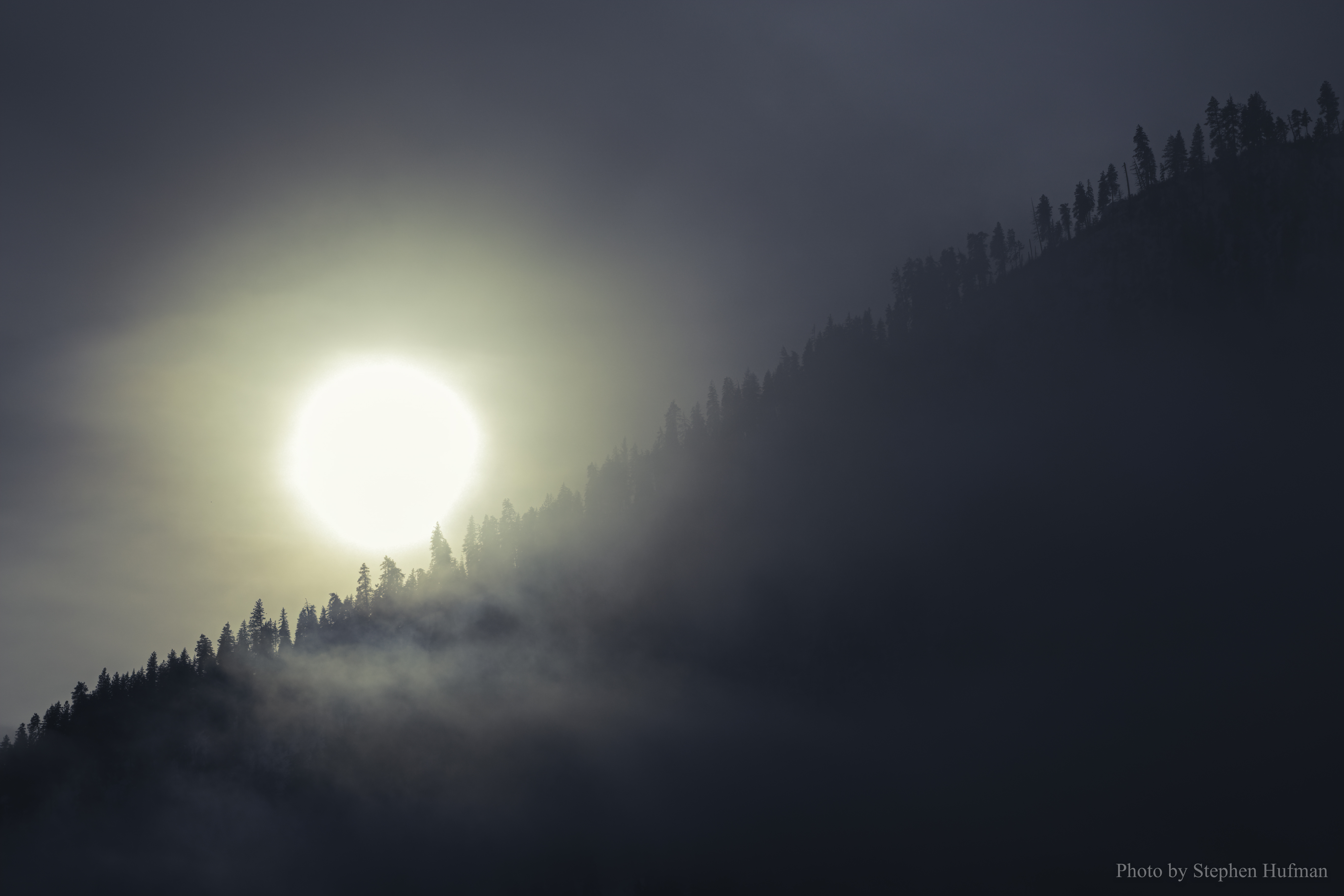 Valley fog and snow covered ridge